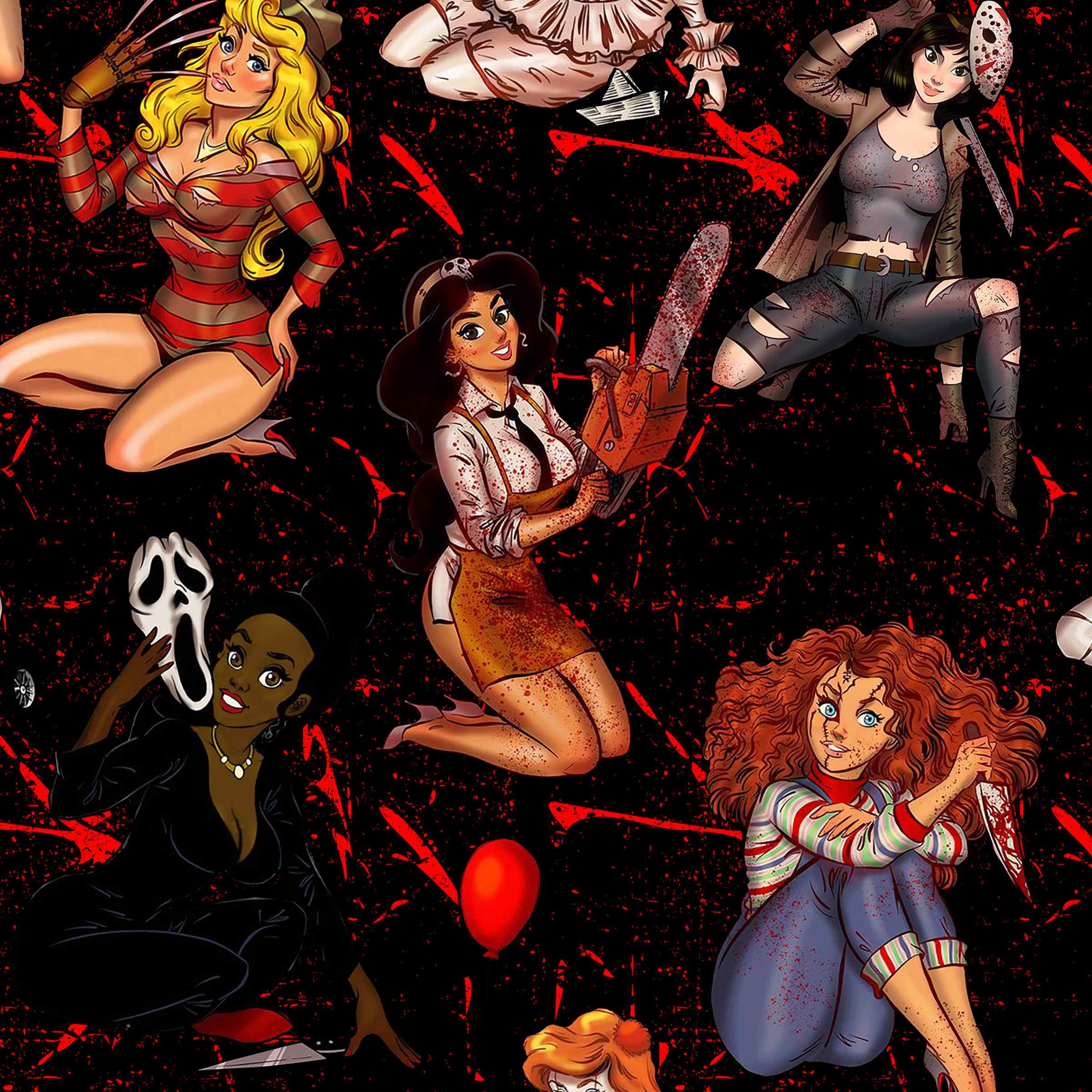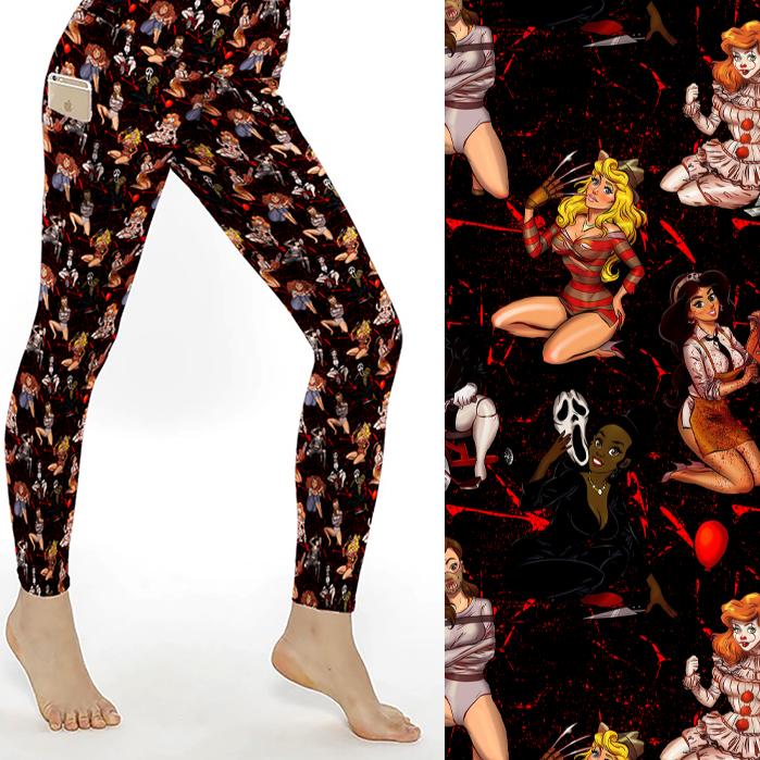 Dare to tread where fairy tales twist into nightmares with our Good Girls Gone Bad Leggings. This harrowing collection reimagines your beloved princesses as icons of horror, blending innocence with the macabre in a way you've never seen before. Cinderella wields her blades as Freddy Krueger, Snow White plots sinister games as Jigsaw, Tiana dons the mask of Ghostface, Jasmine revs up for the Texas Chainsaw Massacre, Ariel floats as Pennywise, Merida wreaks havoc as Chucky, Belle exudes the eerie calm of Hannibal Lecter, and Mulan stalks as Jason Voorhees, all against a backdrop that's as dark as their new legacies.