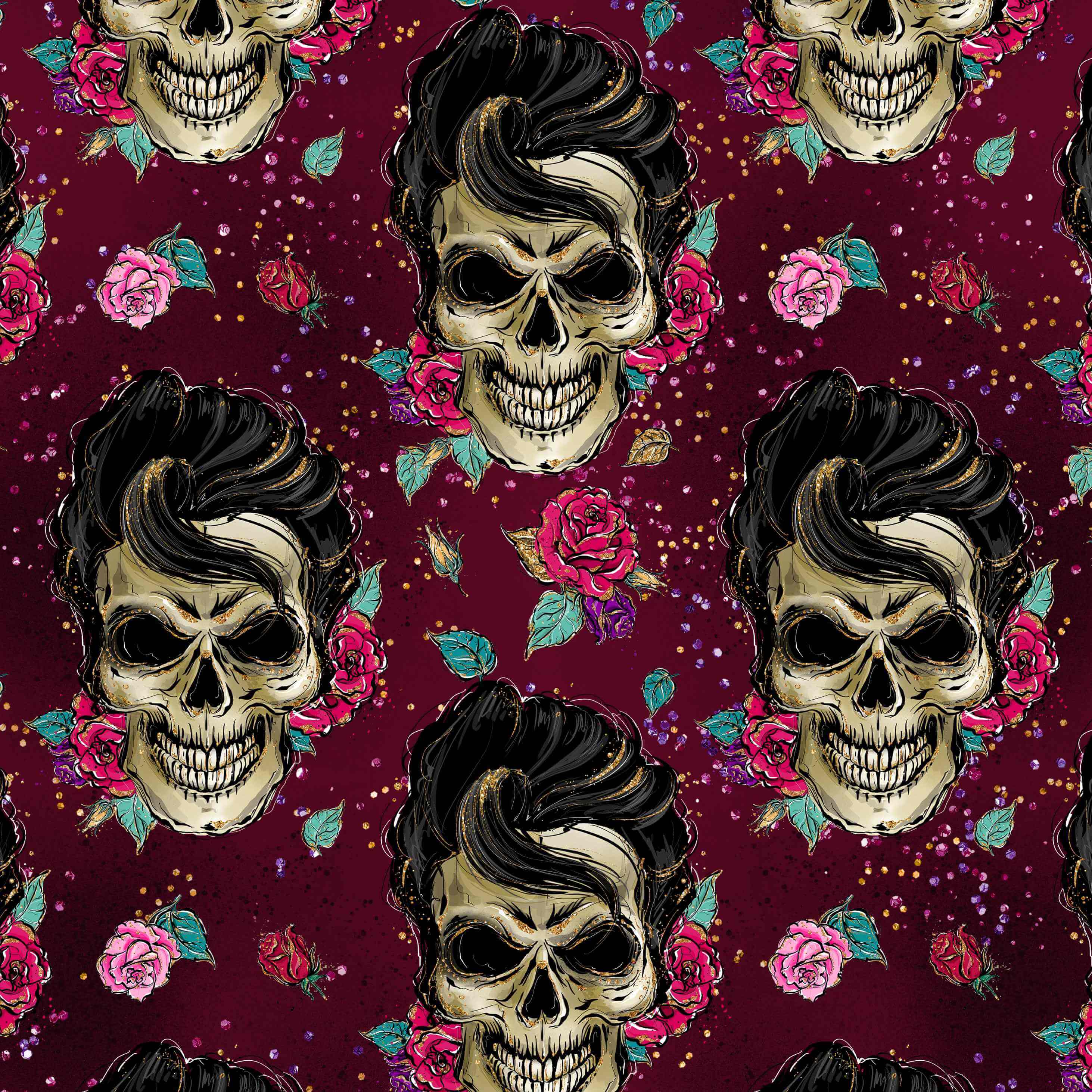 Get ready to rock and roll with our Hollywood Skulls - Elvis Presley leggings! Paying homage to the King of Rock and Roll, these leggings feature classic Elvis skulls on a deep burgundy background. It's the perfect blend of edgy and iconic, capturing the essence of Elvis's legendary style.