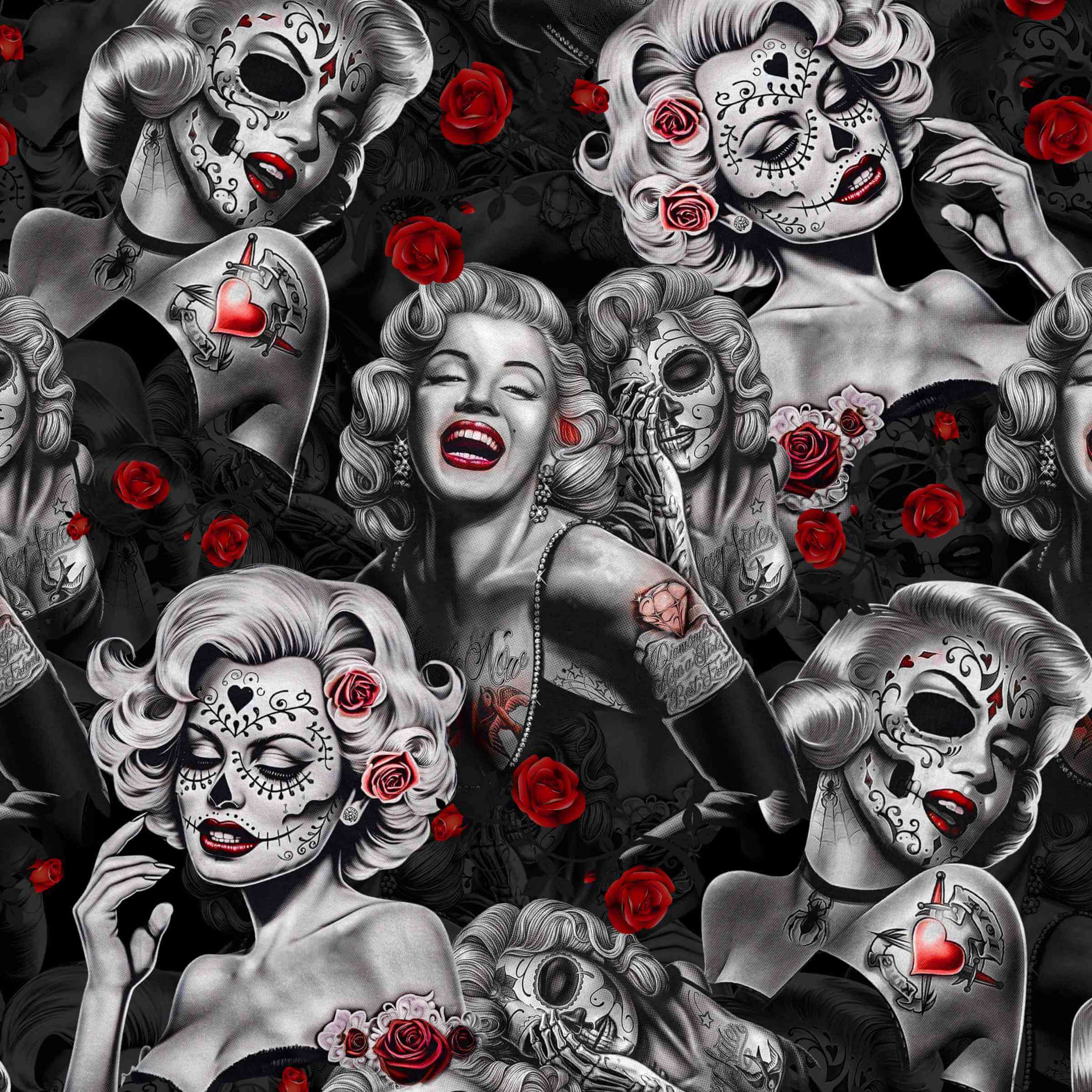 Prepare to step into the iconic world of Marilyn Monroe with our Some Like It Hot Marilyn Monroe Capri Jogger Pants. These joggers pay homage to the timeless beauty of Marilyn Monroe, featuring her iconic image alongside her sugar skull alter ego in a captivating grayscale print. Against a sleek black backdrop, accents of vibrant red roses and crimson lipstick add a pop of colour, creating a striking contrast that captures the essence of Marilyn's bold personality.